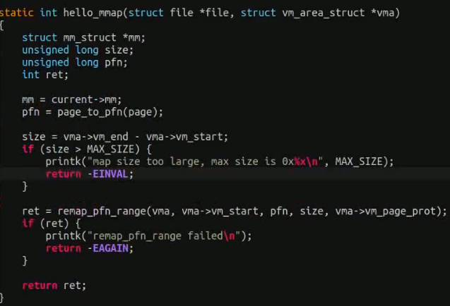 mmap ko实现的例子,使用remap_pfn_range实现