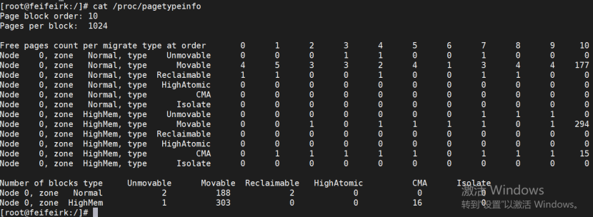 通过/proc/pagetypeinfo可以查看详细信息