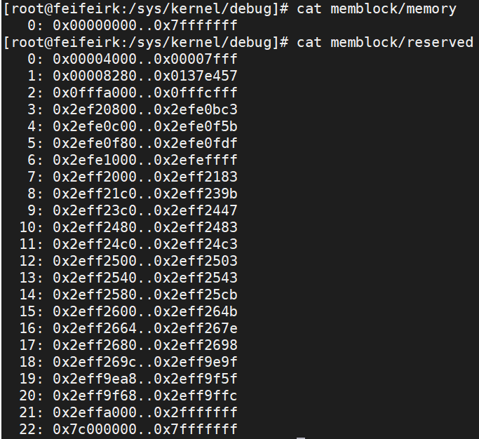 通过命令cat /proc/sys/kernel/debug/memblock/reserved可以查看reserved信息