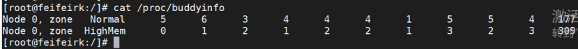 通过命令查看伙伴系统信息,每个order显示一列