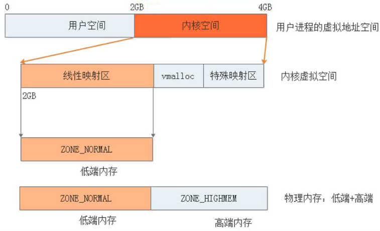 ZONE域:kernel物理内存分成几块区域,如图
