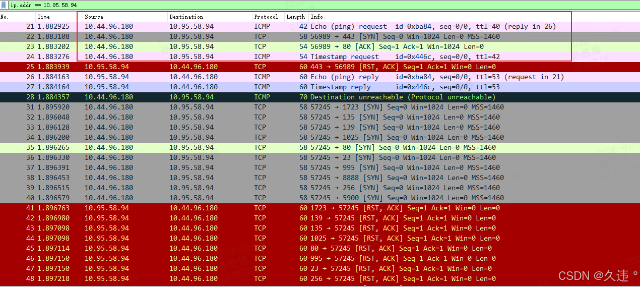 - ack 扫描 :nmap 给目标发送 ack 包,主机搞不清情况,只能回复 rst 包,表示无法建立连接。(ack 扫描成功率很低,因为不少主机或安全机制会把这种莫名其妙的 ack 请求直接过滤掉)