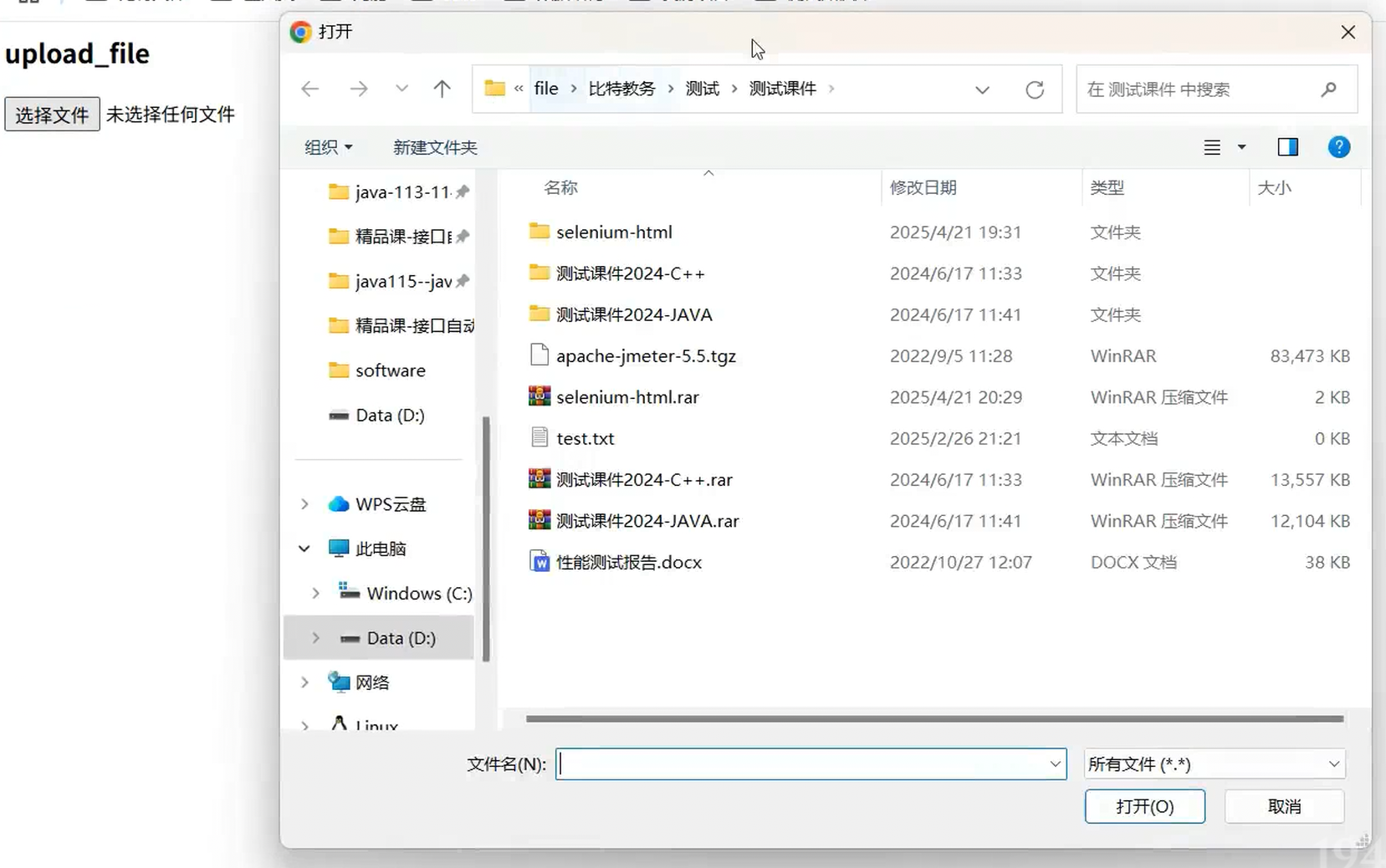 driver.findElement(By.cssSelector("body > div > div > input[type=file]")).sendKeys("D:\\file\\比特教务\\测试\\测试课件\\test.txt");