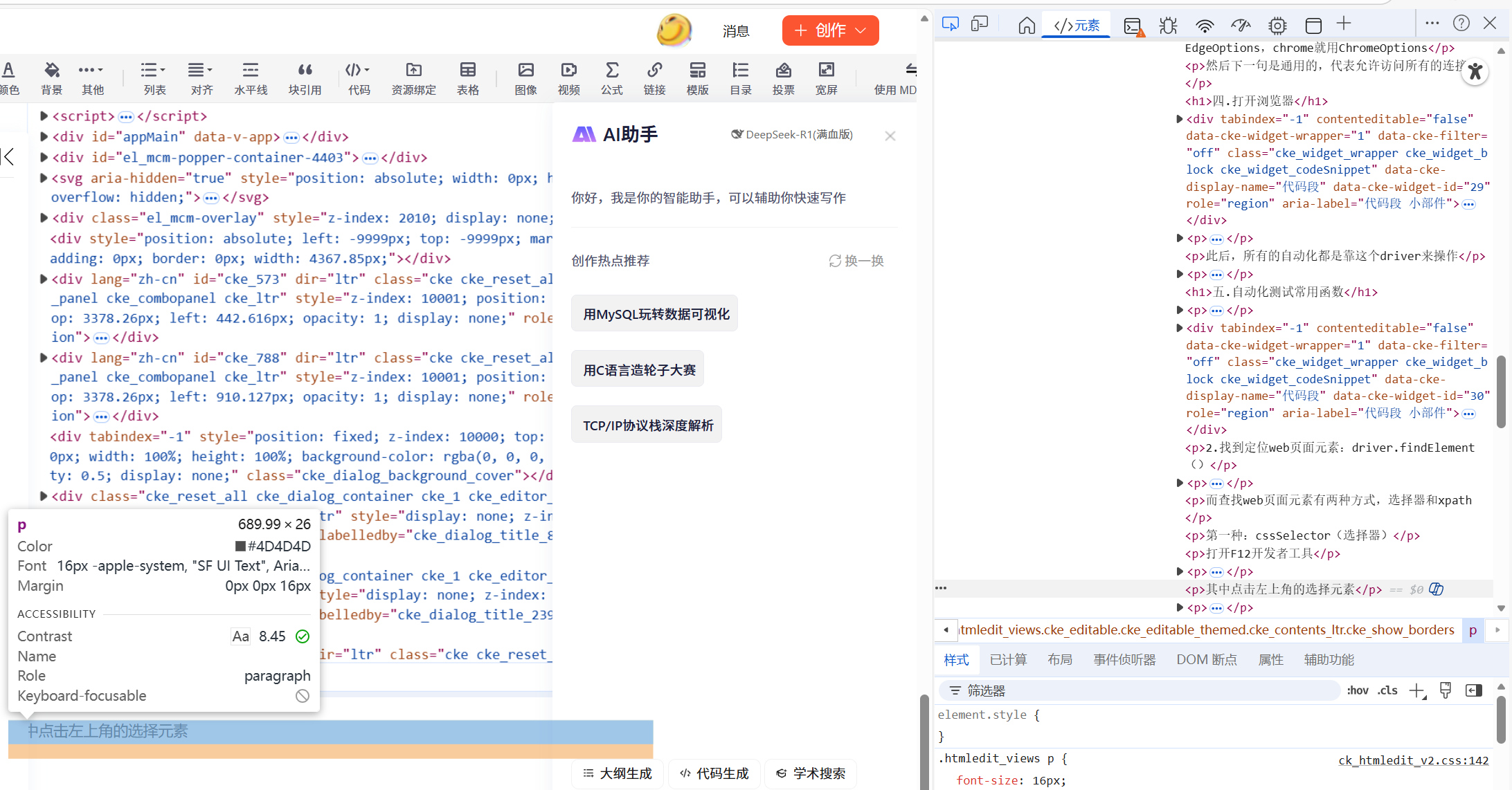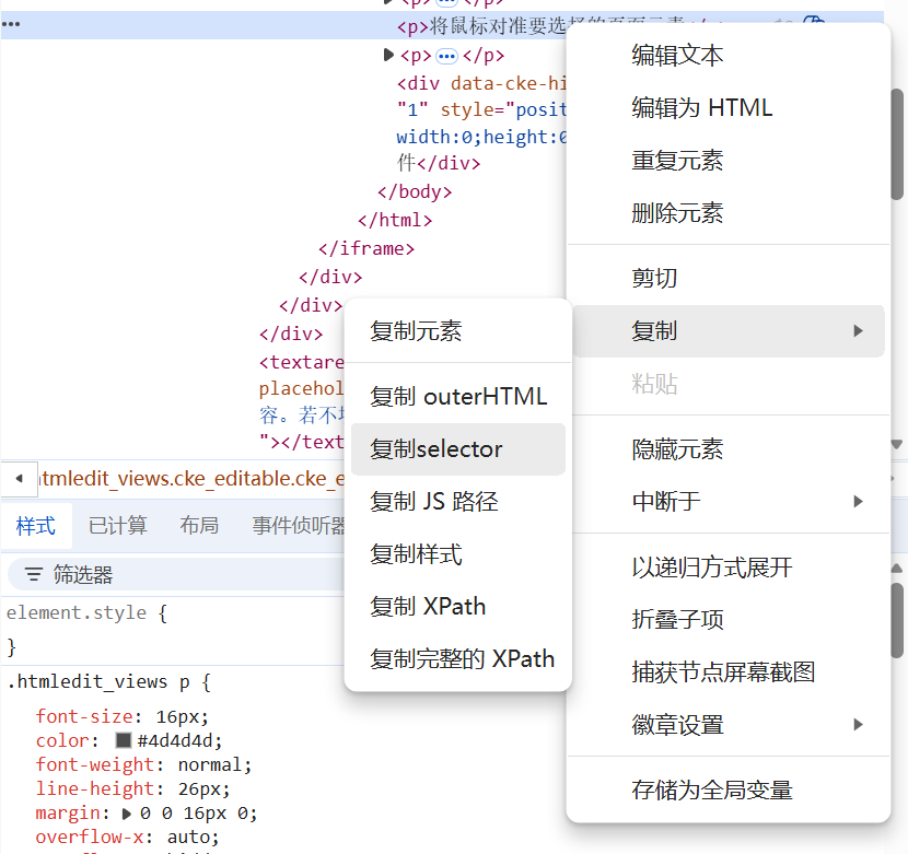 右侧就会自动锁定对应元素位置,再右键点击该行代码,里面会有复制选项