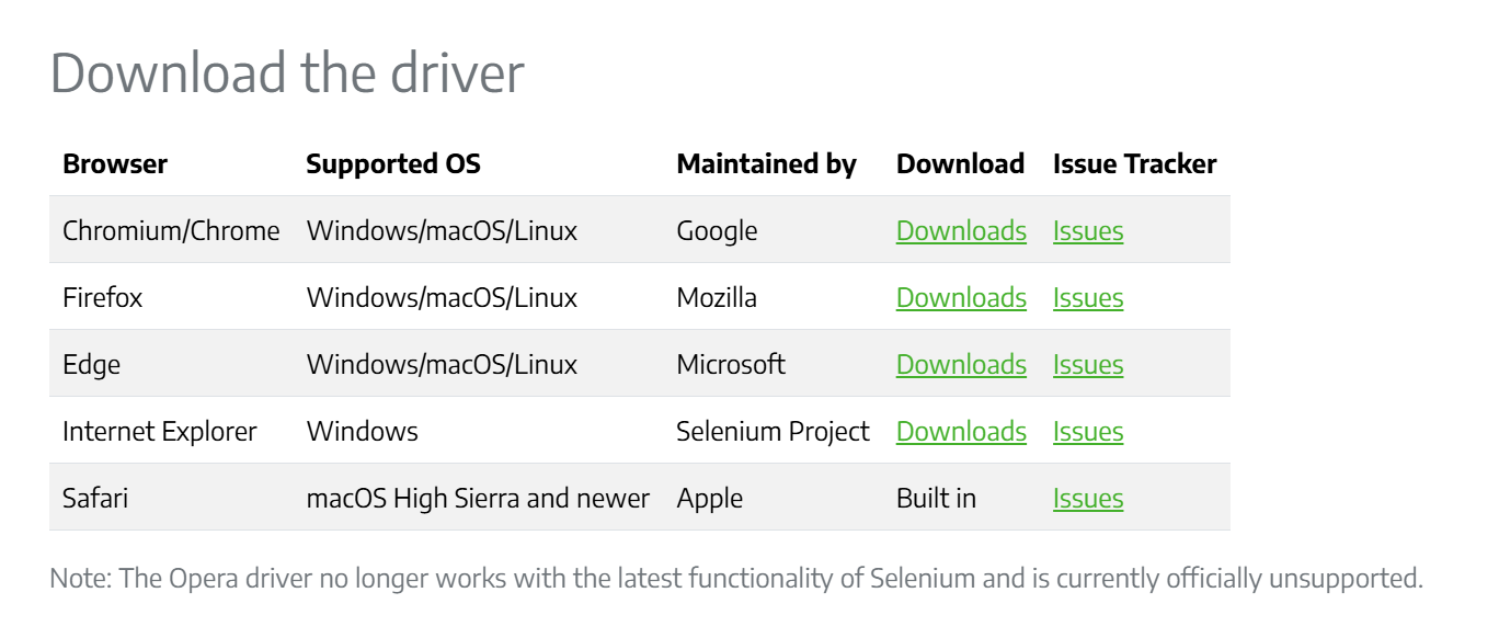 https://www.selenium.dev/documentation/webdriver/troubleshooting/errors/driver_location/通过该链接就能直接进入Selenium官网下载不同浏览器的驱动