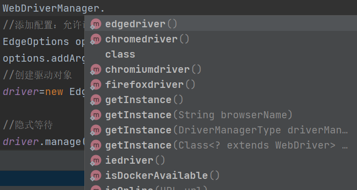 同样的,如果是edge就创建EdgeDriver,是chrome就创建ChromeDriver