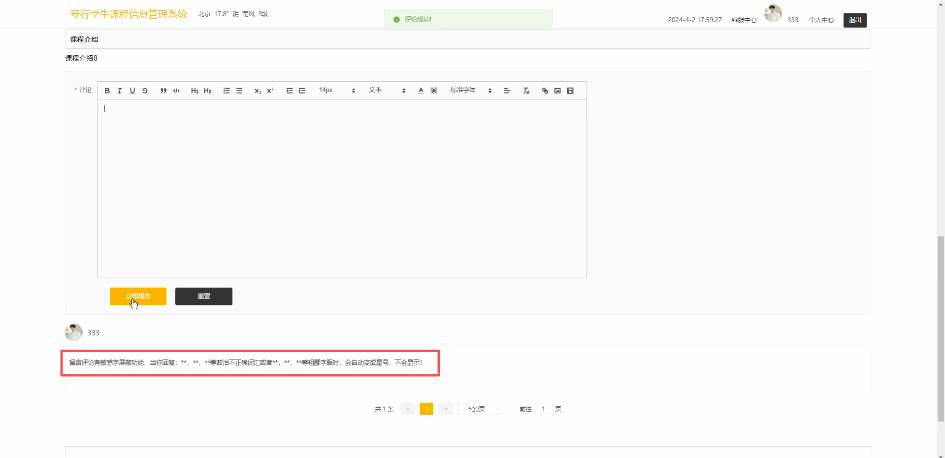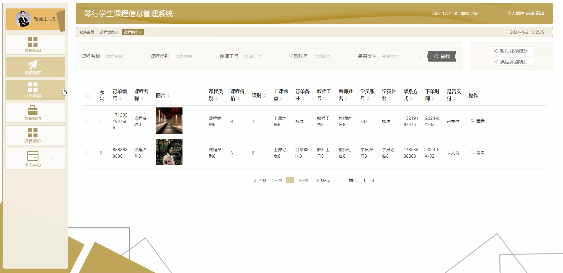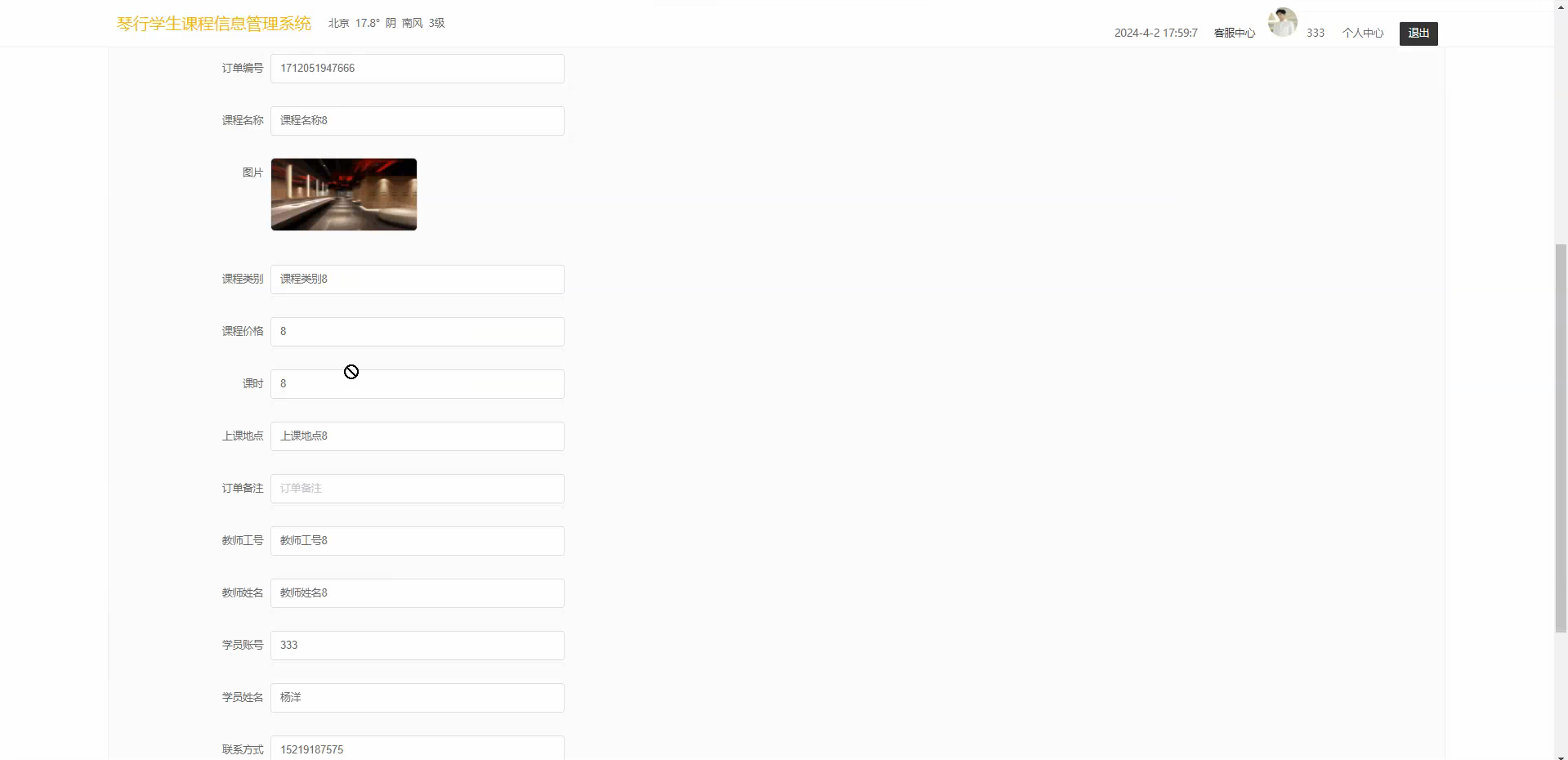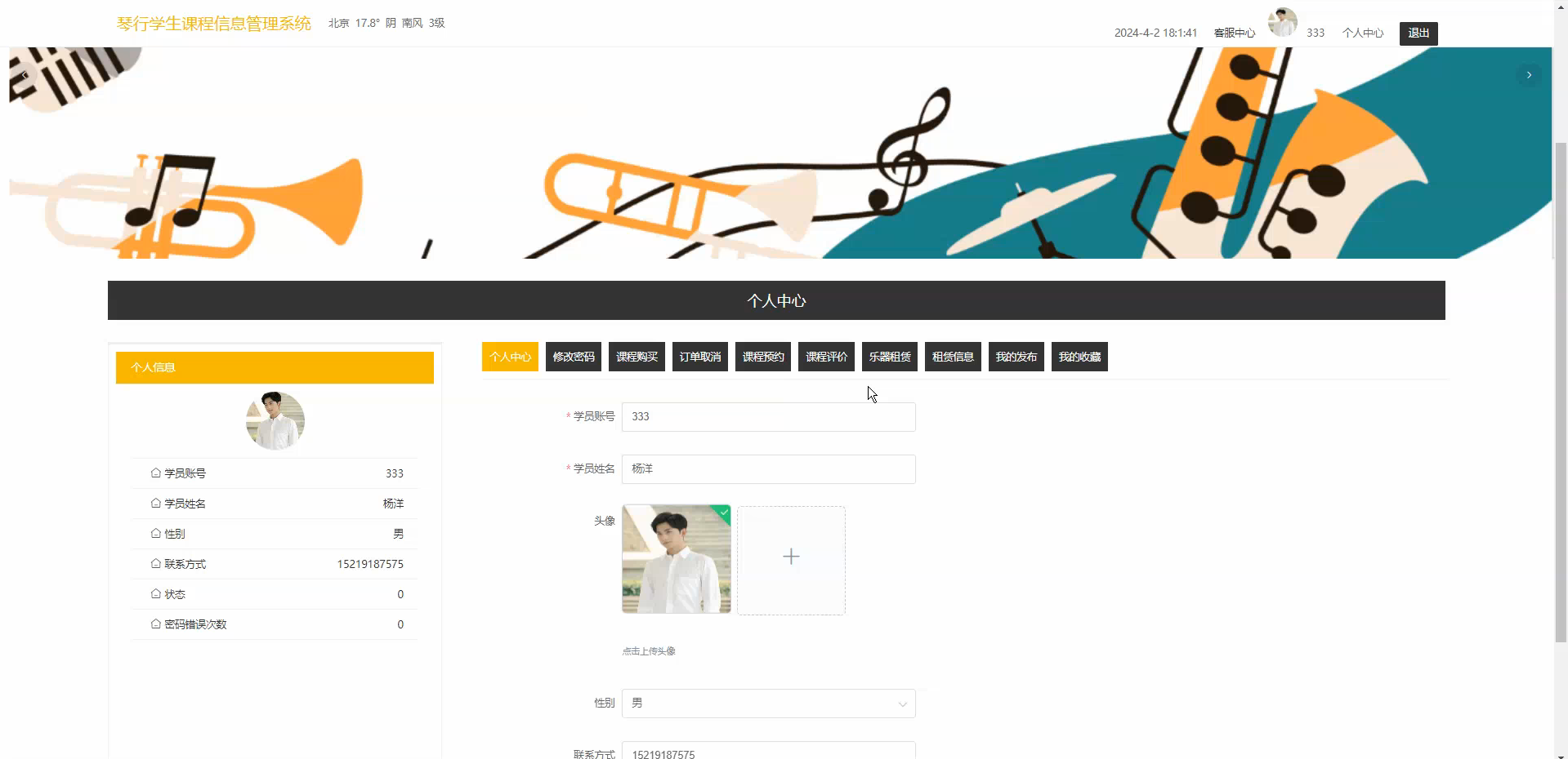 开发一套基于SpringBoot的琴行学生课程信息管理系统,实现以下目标: