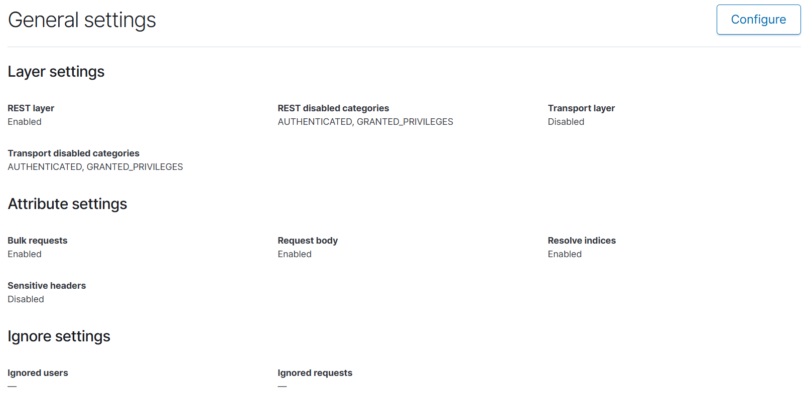 audit:disabled_rest_categories- 作用 :指定在 REST 层忽略的审计类别