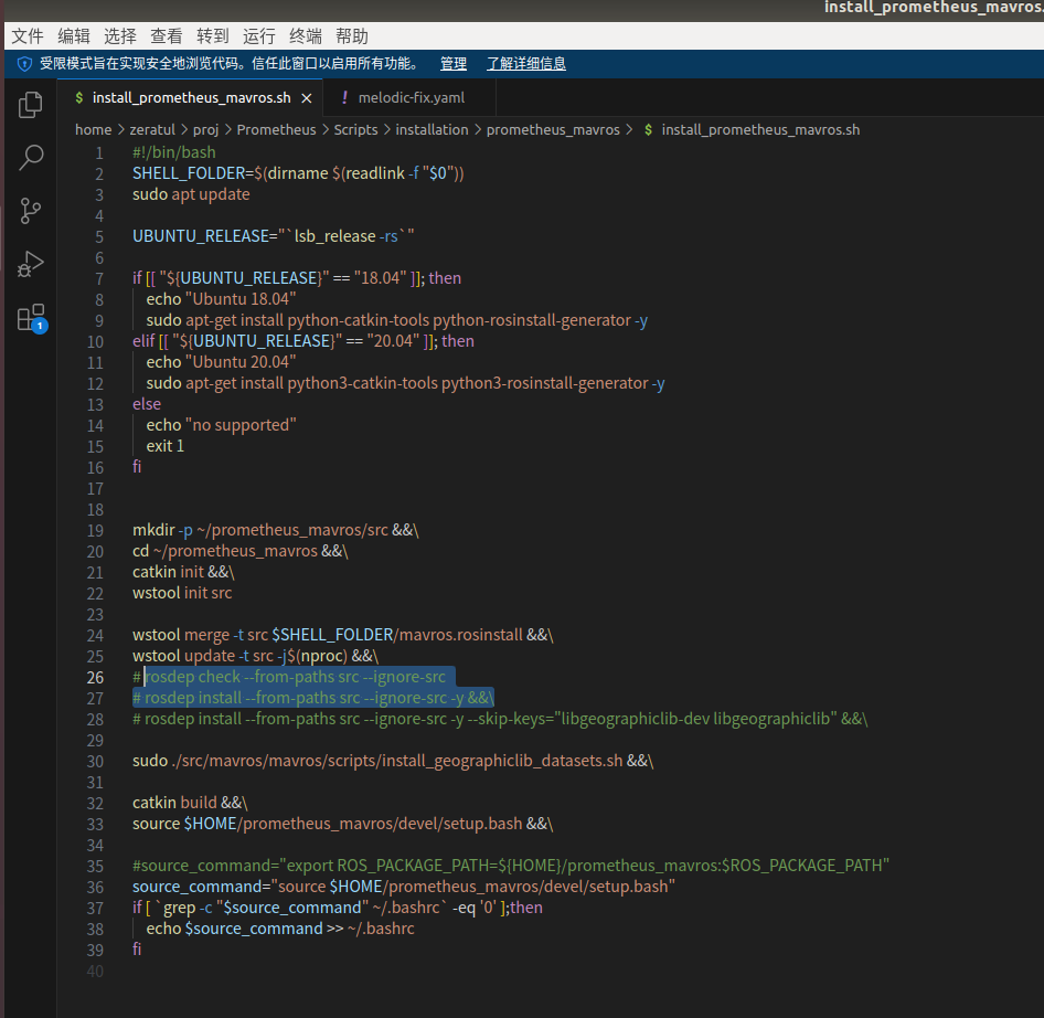 这中间又进行了一些错误的试错,主要是rosdepc和rosdep相关的,就不往上贴了