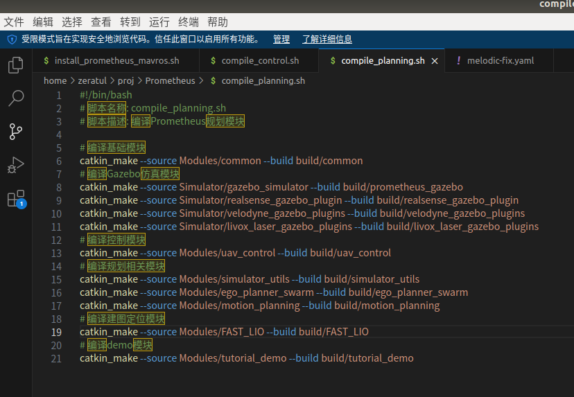 教程中有提到promethus平台适配于ubuntu20安装和18安装,通用在20下。我的电脑由于使用条件限制,只能在18下安装,本来以为适当修改一点就可以编译通过了,没想到踩了一大堆坑,现在记录总结