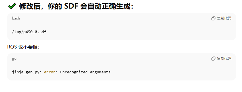 jinja_gen.py: error: unrecognized arguments: /home/zeratul/proj/Prometheus/Simulator/gazebo_simulator/gazebo_models/uav_models/p450/p450.sdf.jinja /home/zeratul/proj/Prometheus/Simulator/gazebo_simulator > /tmp/p450_0.sdf