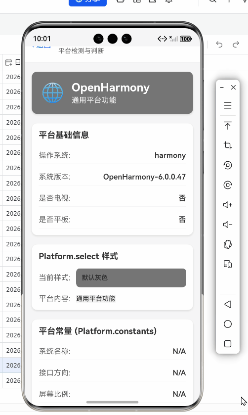 当Bridge层返回'openharmony'后,必须通过Platform.constants二次验证。因为部分OpenHarmony设备(如早期模拟器)可能错误返回'android'。关键字段Platform.constants.HarmonyOS在OpenHarmony设备上为true,这是社区版React Native添加的扩展属性,标准版不存在。