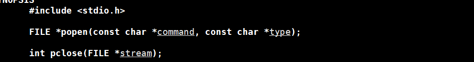 popen是在底层建立管道和子进程,子进程执行command指令(linux下的指令),结果通过FILE*返回,type的值是r、w等,参考open调用。成功返回用于读写管道的FILE*指针,如果子进程创建失败或者管道创建失败,或者你的栈没有足够的空间了,返回空指针。