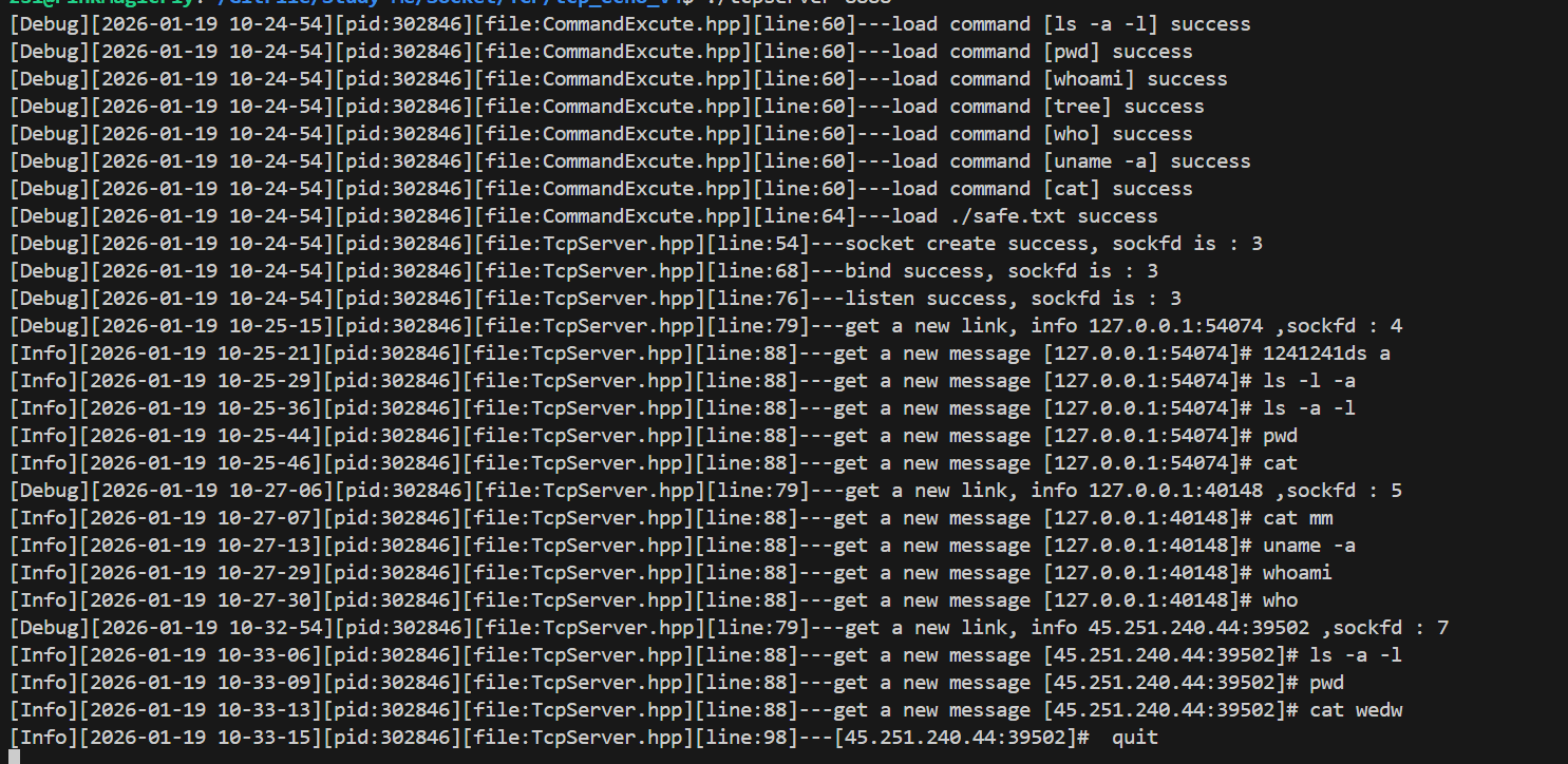 我的代码中,tcp接受数据采用的是recv。因为tcp面向字节流,所以recv也能接受,但是问题在于,实际上我们的数据很可能需要完整的,一次就接受完,比如我第6个远程指令一样。看起来好像没影响啊,不都是字节流传过来吗,但是对于庞大的字节流来说,tcp不会一次性传过来,很可能是间隔性的传递,这样的话,比如我第6个任务的远程指令就直接被破坏了(当然,因为我的指令比较短,所以这里不会出现问题,但这个问题对于庞大的字节流来说是存在的)。