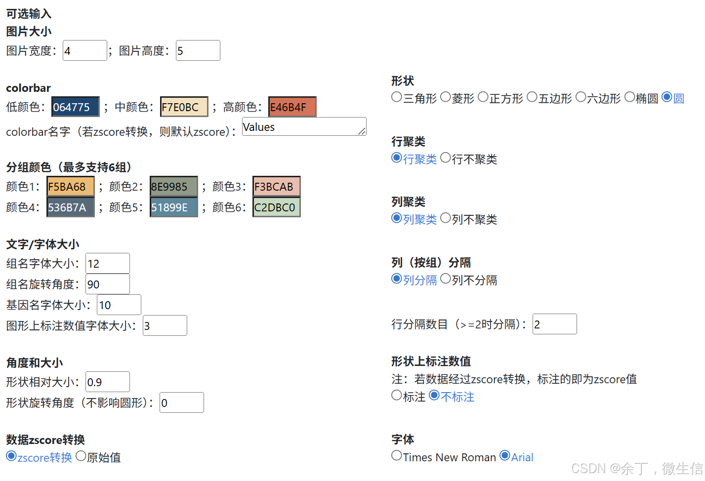 colorbar名字:如果选择zscore转换,则默认是zscore;如果不选择zscore,则按照页面上填写的名字