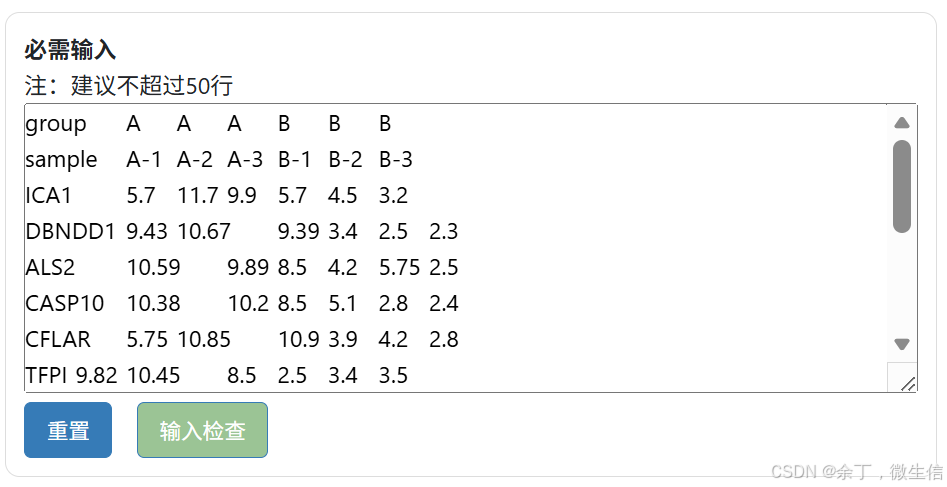 示例数据: 点击输入框下面的"示例"按钮,将载入示例数据。