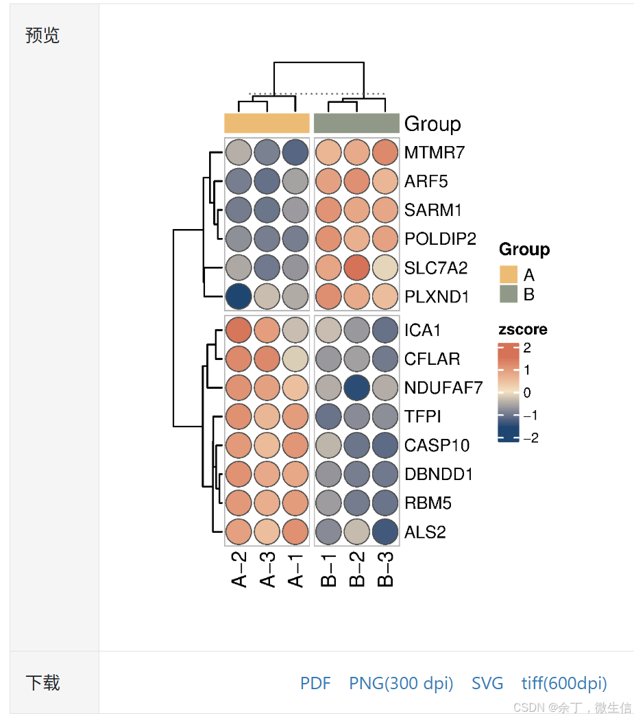 检查通过,并且参数选好后,点击"提交"按钮,约3s后,会在页面上显示圆点热图。我们提供了pdf、svg两种矢量图,png、tiff两种标量图供大家下载使用。