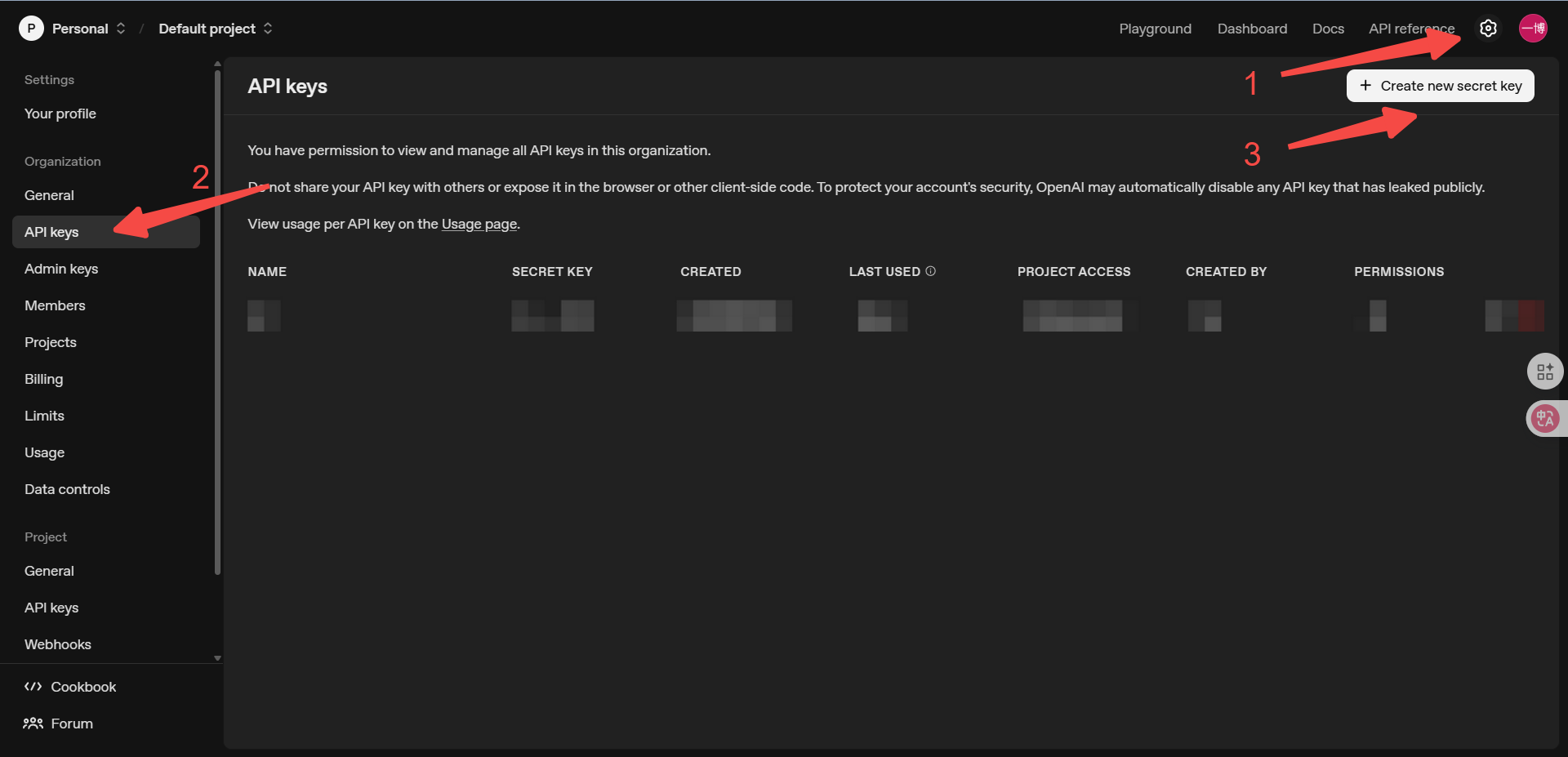 这里建议使用openai官方提供的apikey,官网https://platform.openai.com/