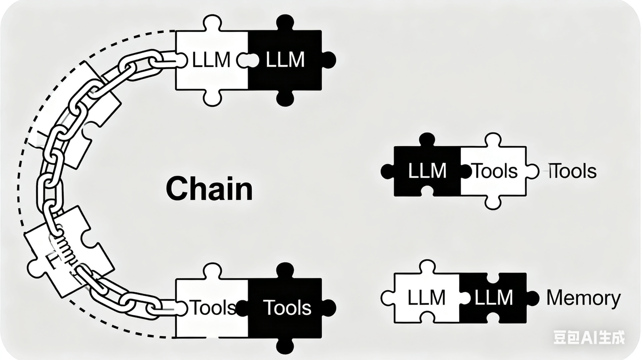 对于 LangChain,它给我们提供了链式执⾏的能⼒,即我们只需要定义各个"组件",将它们"链起来",⼀次性执⾏即可得到最终效果。