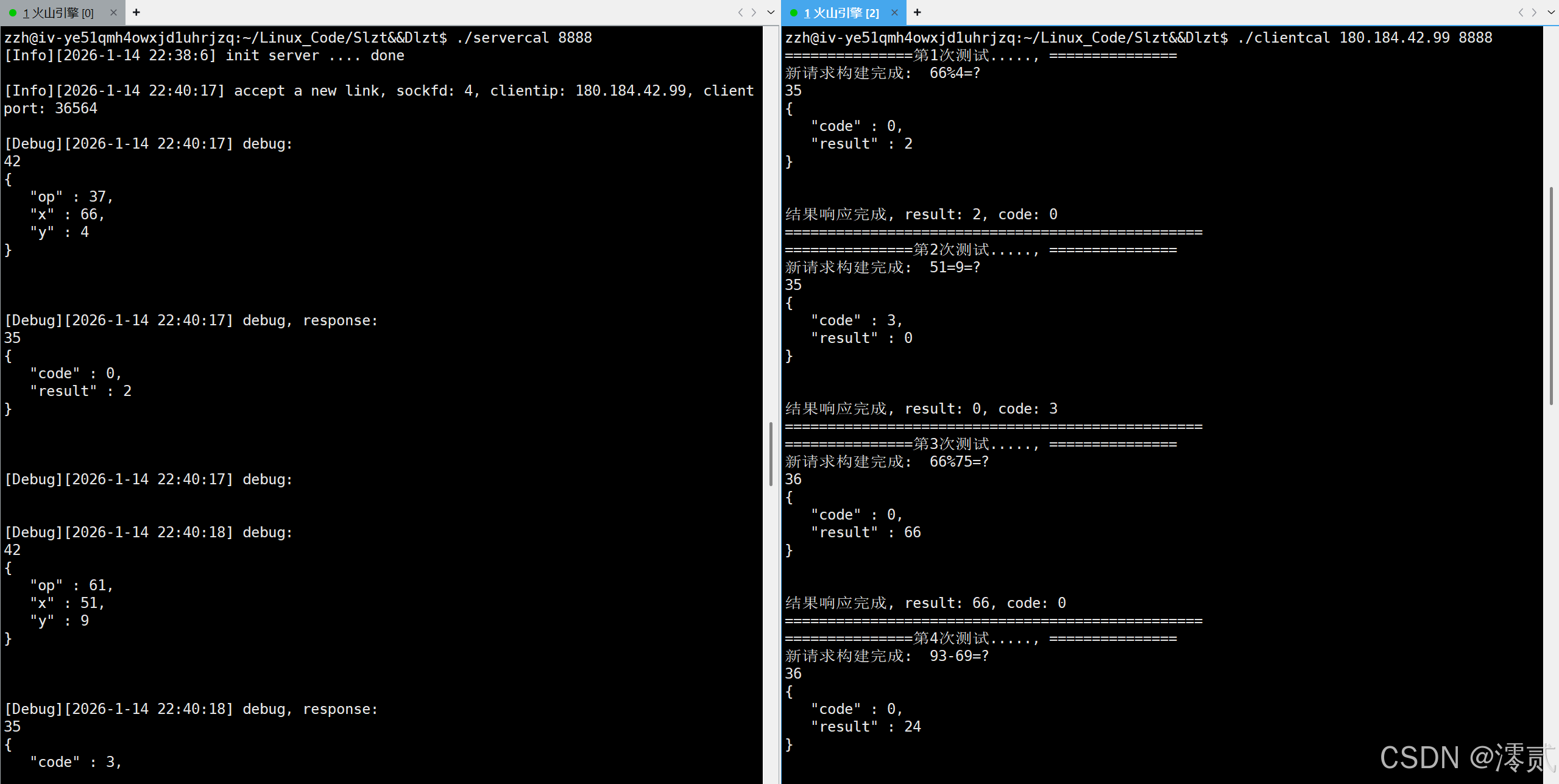 这里就是很简单的测试代码,向指定 TCP 服务器连续发送 10 次随机计算请求(包含随机操作数、随机运算符),并接收服务器返回的计算响应结果进行解析和打印,整体流程贴合网络通信的「序列化→编码→发送→接收→解码→反序列化」规范