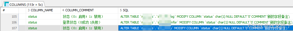 WHERE a.COLUMN_NAME = 'status'