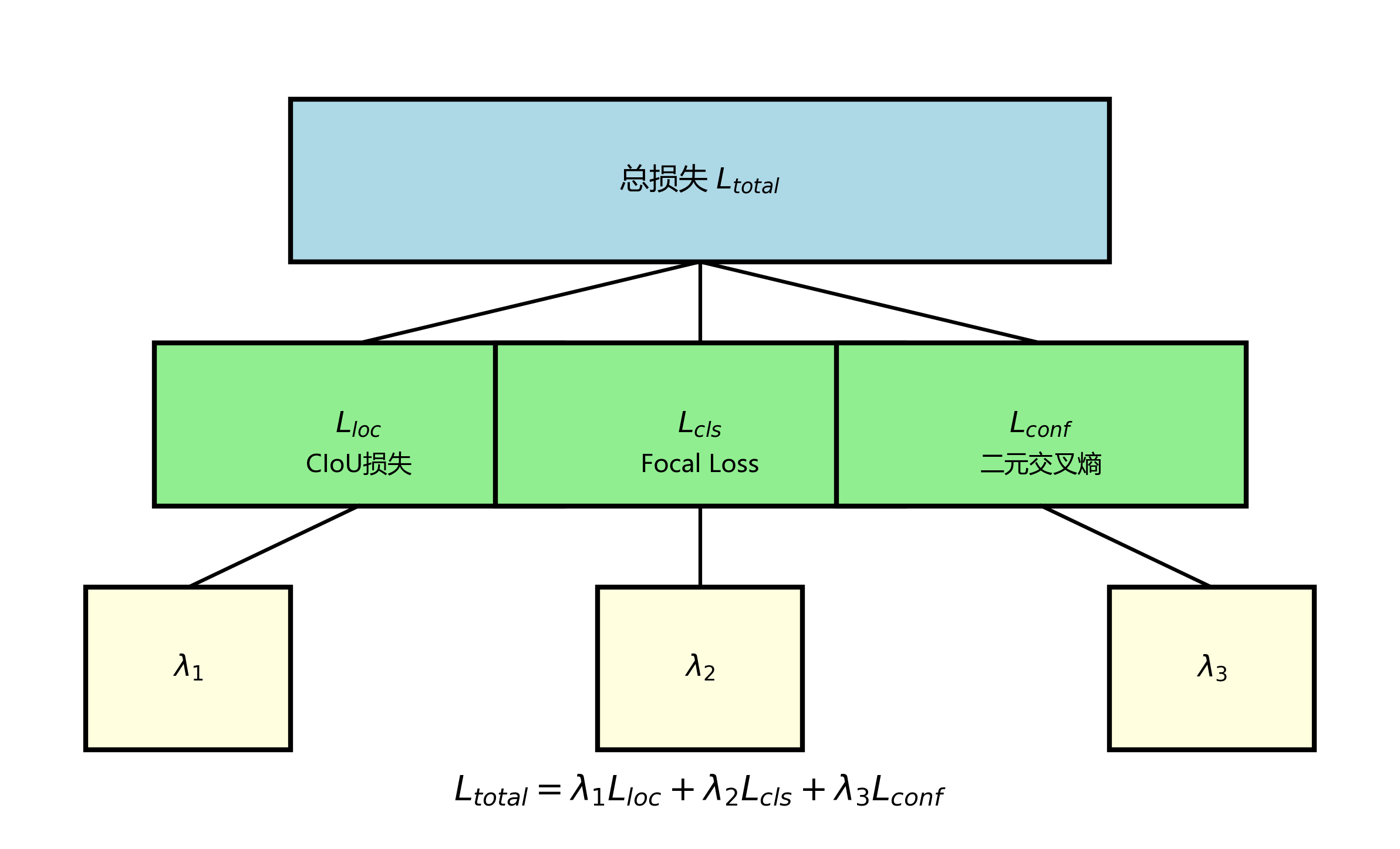 其中, L l o c L_{loc} Lloc是定位损失,采用CIoU损失函数; L c l s L_{cls} Lcls是分类损失,采用Focal Loss解决类别不平衡问题; L c o n f L_{conf} Lconf是置信度损失,采用二元交叉熵损失。λ₁、λ₂、λ₃是平衡各项损失的权重系数。