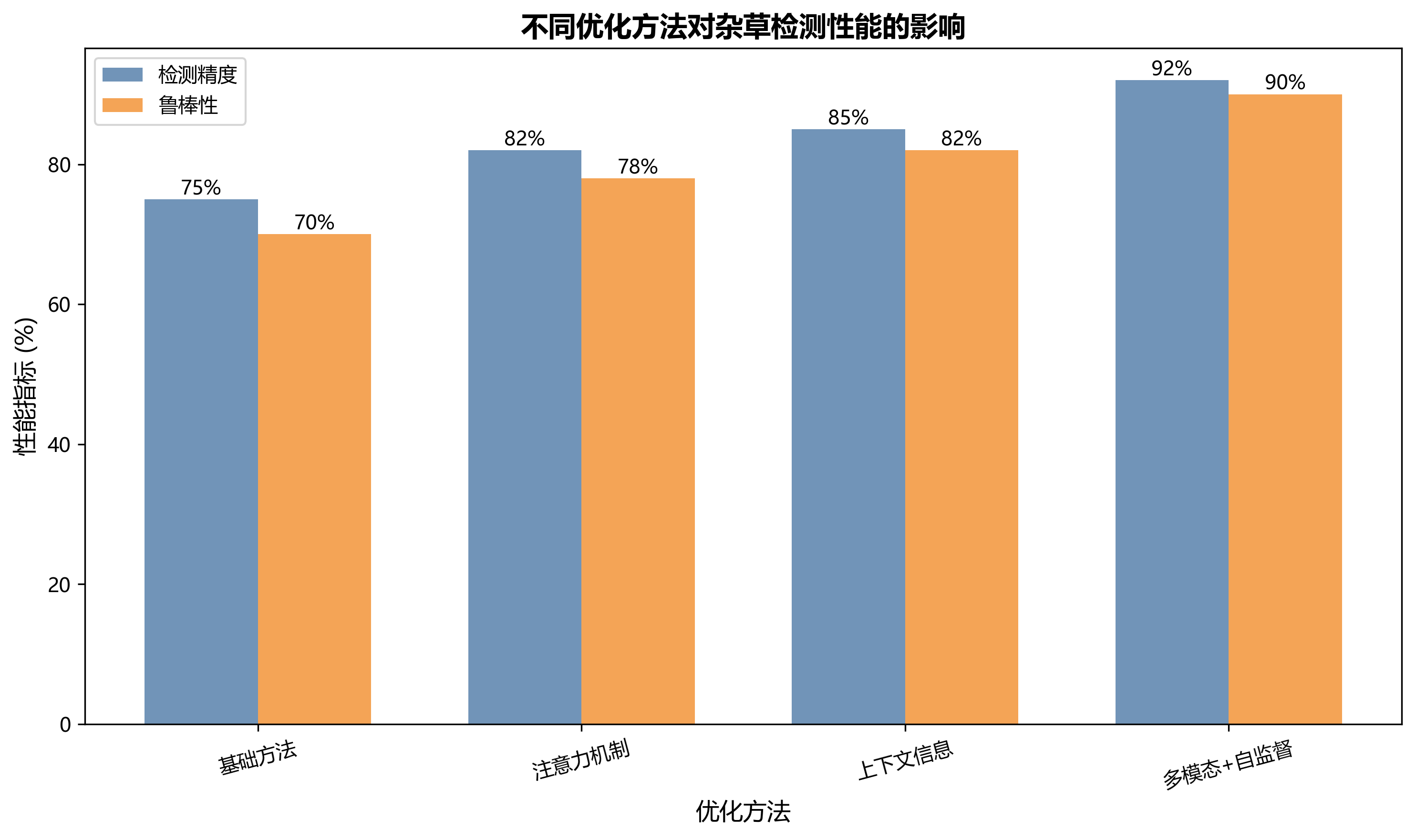 - 设计多模态融合网络,结合光谱信息提高对遮挡杂草的识别