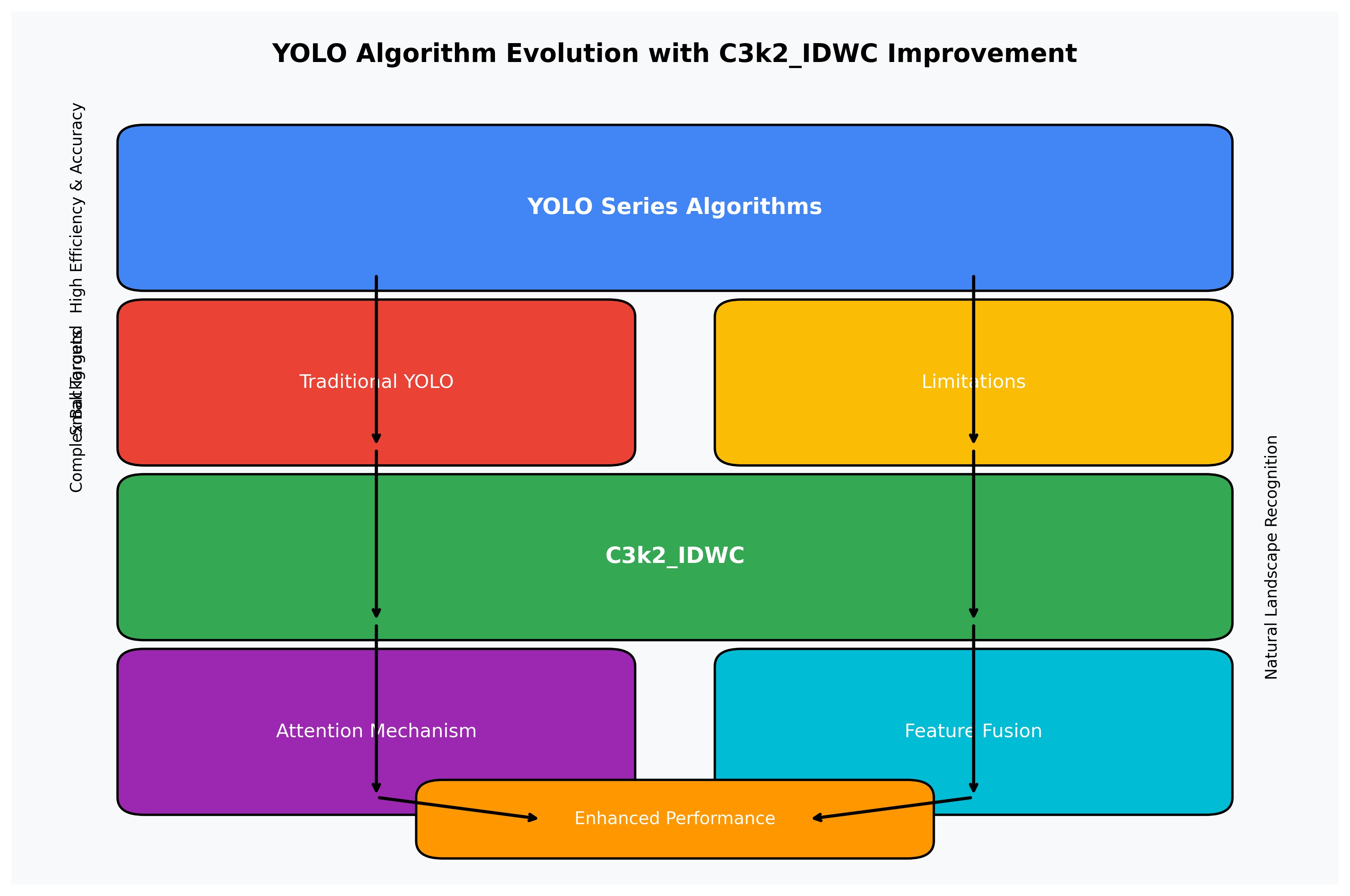 YOLO系列算法以其高效性和准确性在目标检测领域占据重要地位,特别是在自然景观识别这类复杂场景中表现突出。然而,传统YOLO算法在处理小目标和复杂背景时仍存在一定局限性,因此研究人员提出了多种改进方法。C3k2_IDWC就是针对自然景观特点的一种有效改进策略,通过引入新的注意力机制和特征融合方法,显著提升了模型性能。💪
