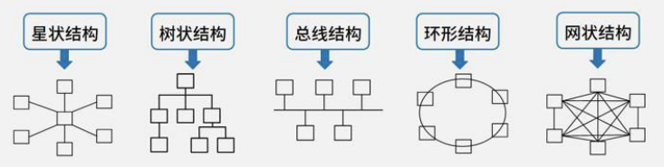 网状:任意节点间存在一条通信链路,任一节点故障不影响其他通信,可靠性高。布线繁琐、成本高、控制复杂。