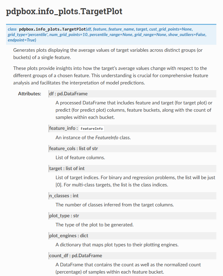 以pdpbox库中的info_plots模块下的TargetPlot类为例,