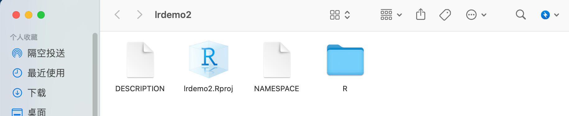 这一步会创建标准 R 包目录结构: