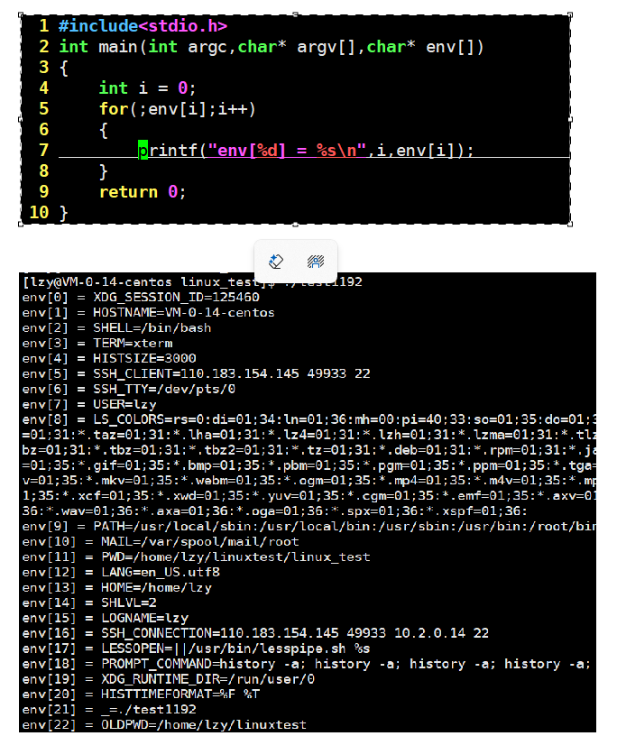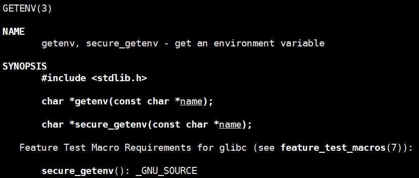 libc中定义的全局变量environ指向环境变量表,environ没有包含在任何头⽂件中,所以在使⽤时要⽤