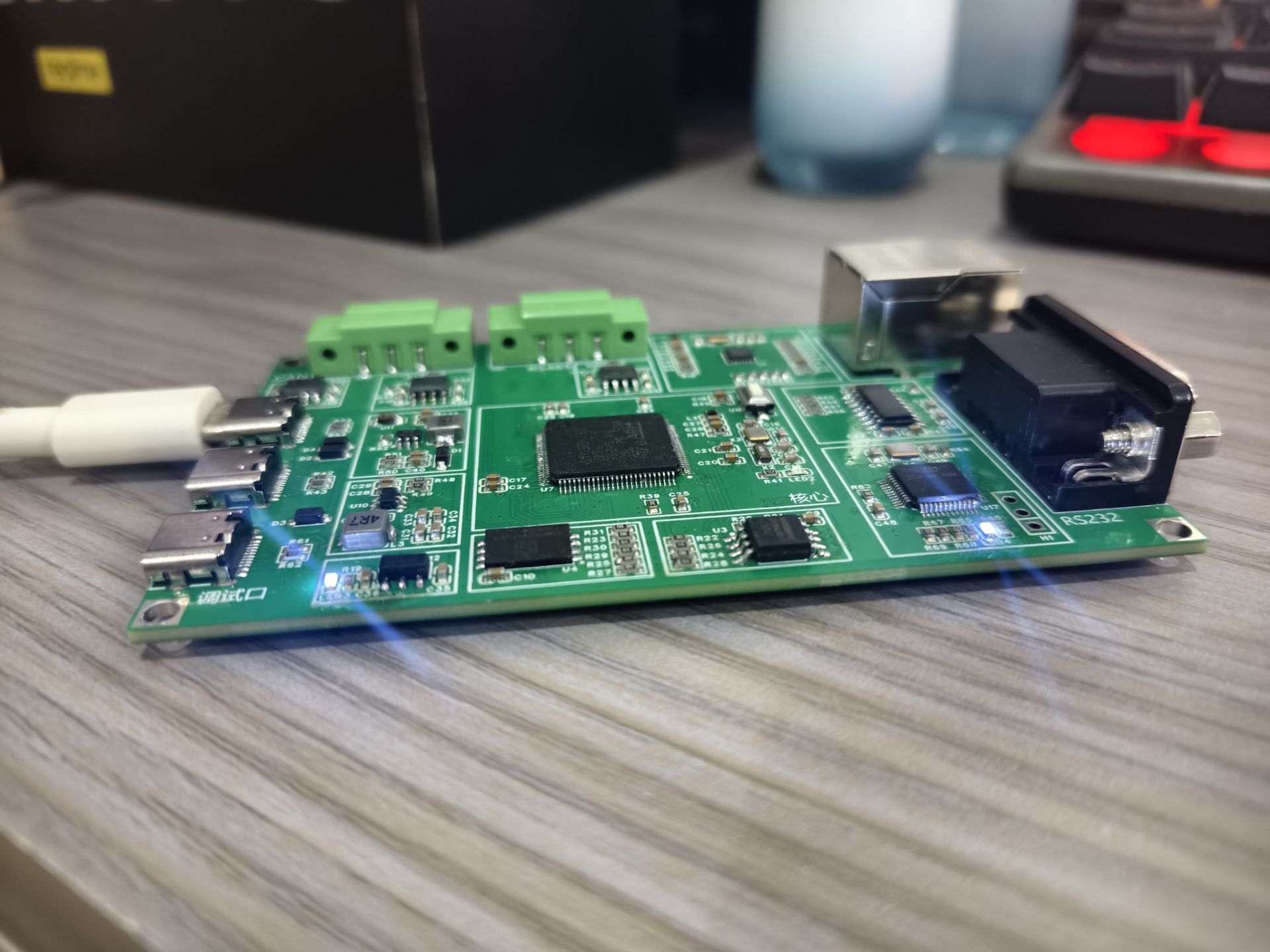 板子主控为STM32H750VBT6,在Keil中直接当STM32H743VIT6使用,有2MB的flash。带RS485接口,带CAN接口,带以太网接口,带RS232接口,带512MB的SD NAND芯片,带4MB的SPI-flash芯片W25Q32,带ST-LINK V2.1下载器,带USB转TTL串口芯片CH340。