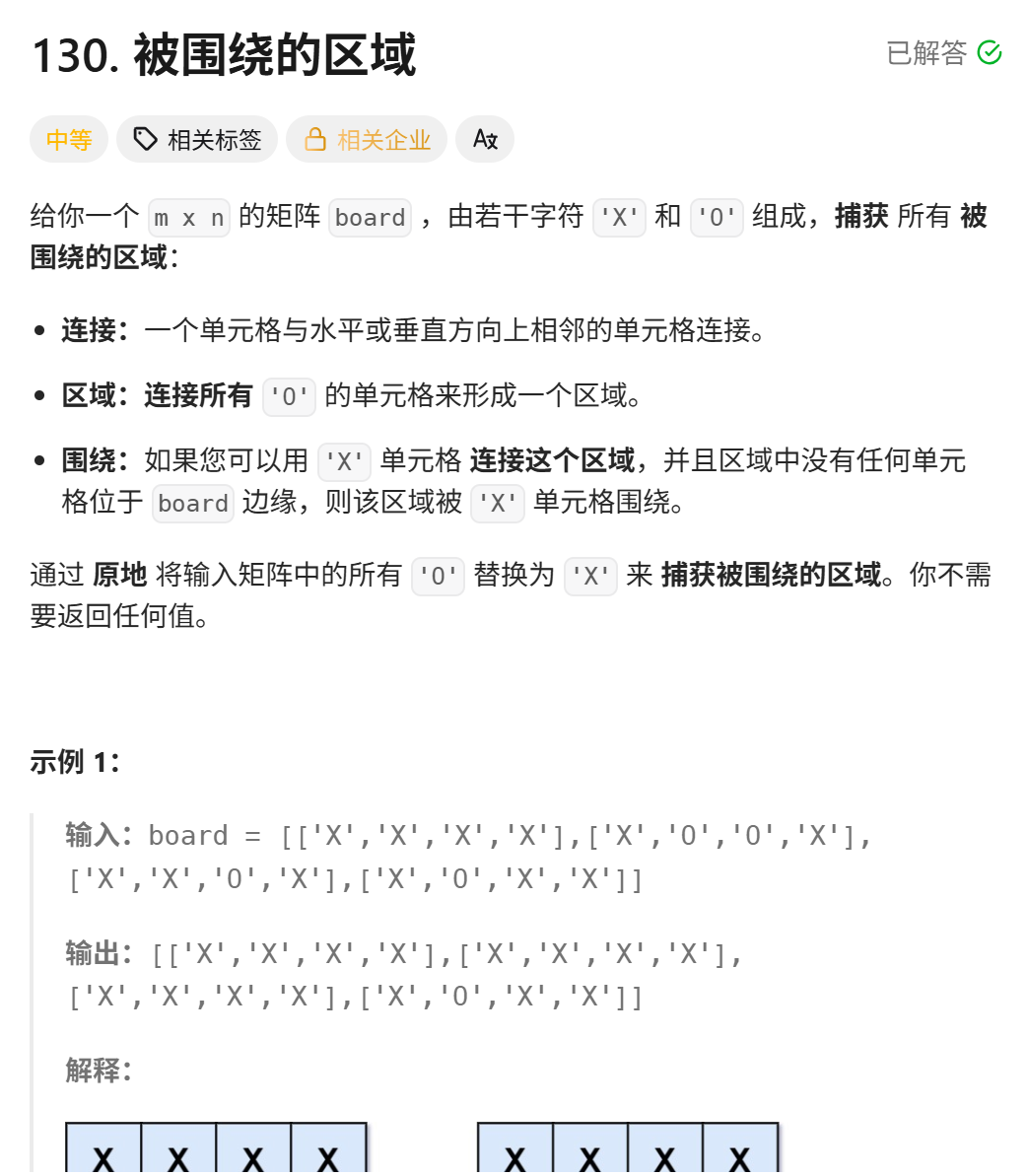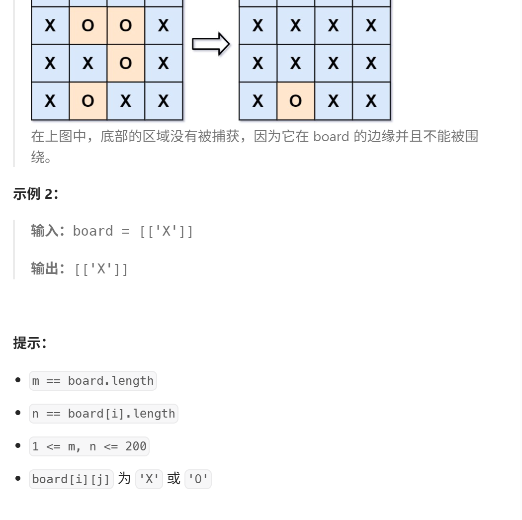 这道题就是先找到靠近边缘的O,并全部标记成T,最后通过遍历将所有O设置成X,所有的T恢复成O