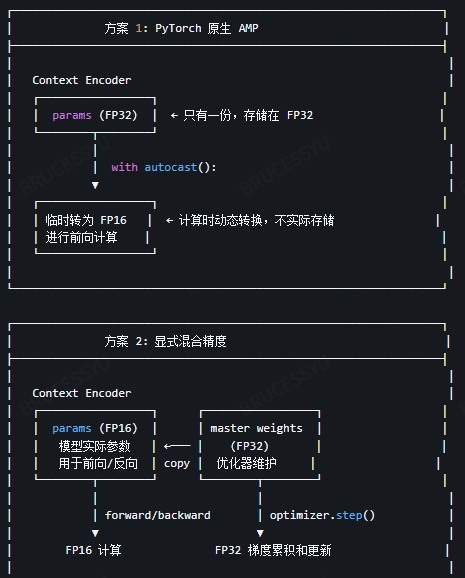 因此无论采用torch原生AMP还是DeepSpeed/FSDP, target encoder都是从context-encoder的FP32中直接更新;