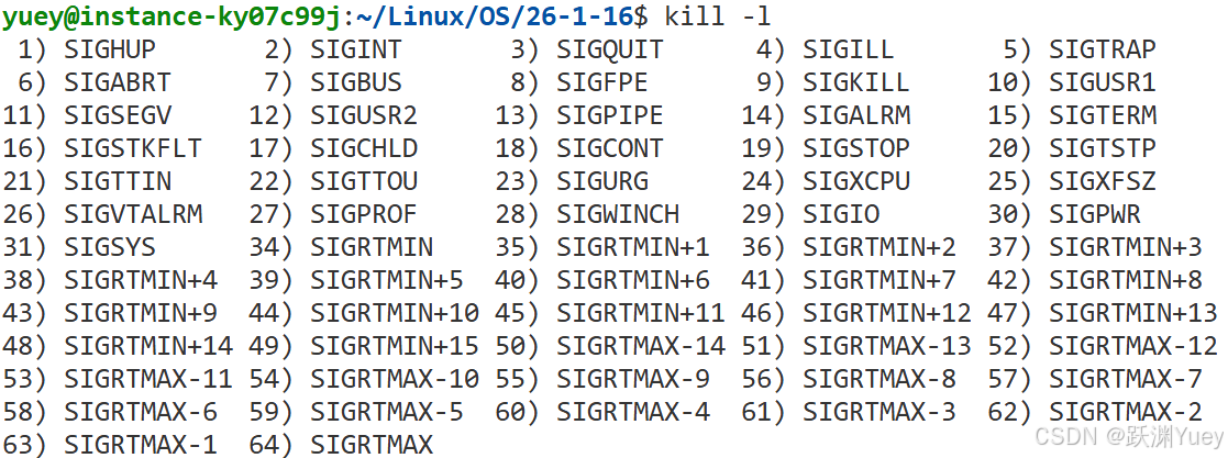在Linux操作系统中一共有62个信号,其中前1 - 31个信号属于普通信号(可以不被立即处理),后面的32个信号属于实时信号(接收到信号后需要立即处理)不需要着重考虑。信号在内核中是用宏定义的。