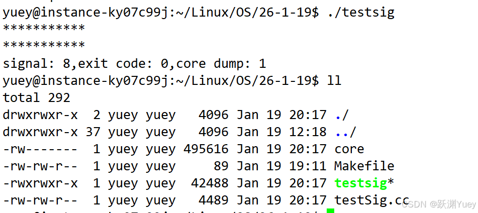 Core VS TermCore行为的核心是在当前路径下生成一个文件,进程异常退出的时候,会将进程在内存中的核心数据拷贝到磁盘形成一个文件,这种机制叫做核心转储。核心存储的目的是为了Debug,在云服务器上为了保证服务器的正常运行,是关闭了Core Dump机制的,可以用ulimit -c设置core文件的大小。