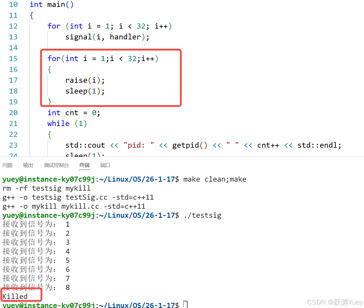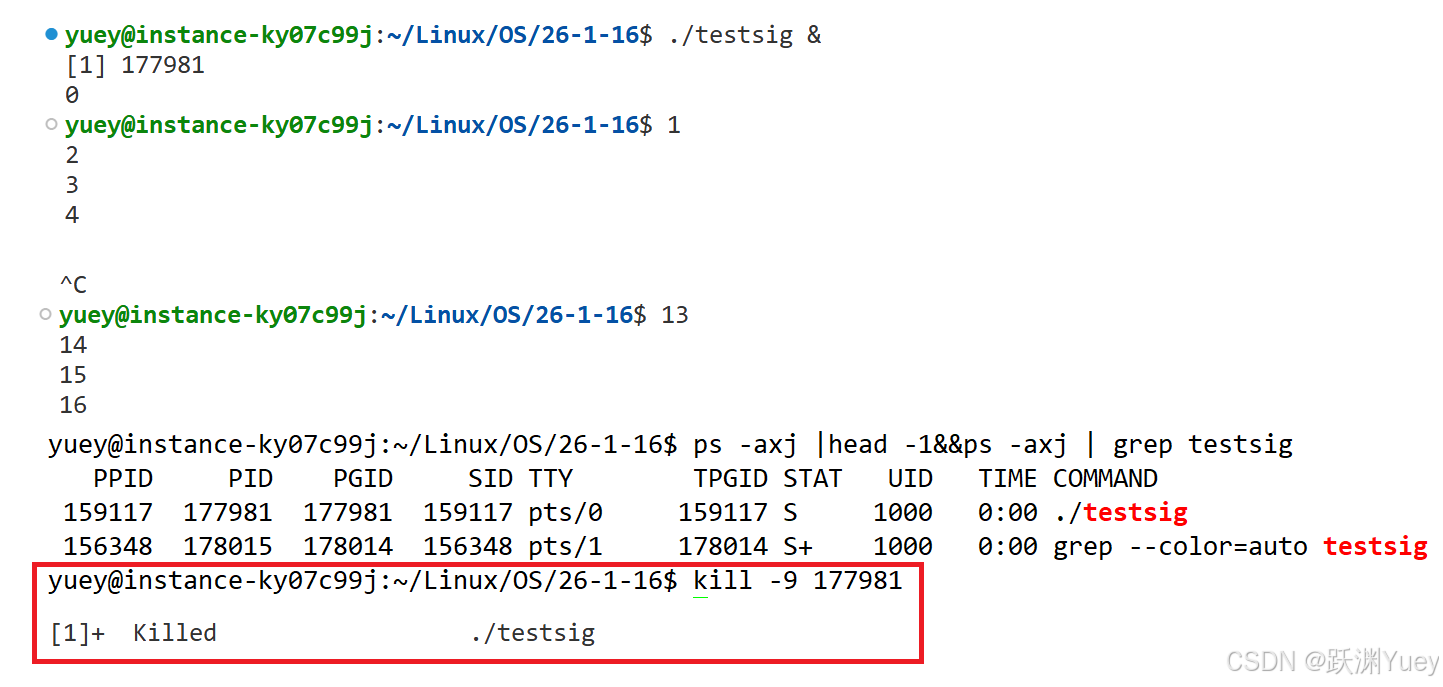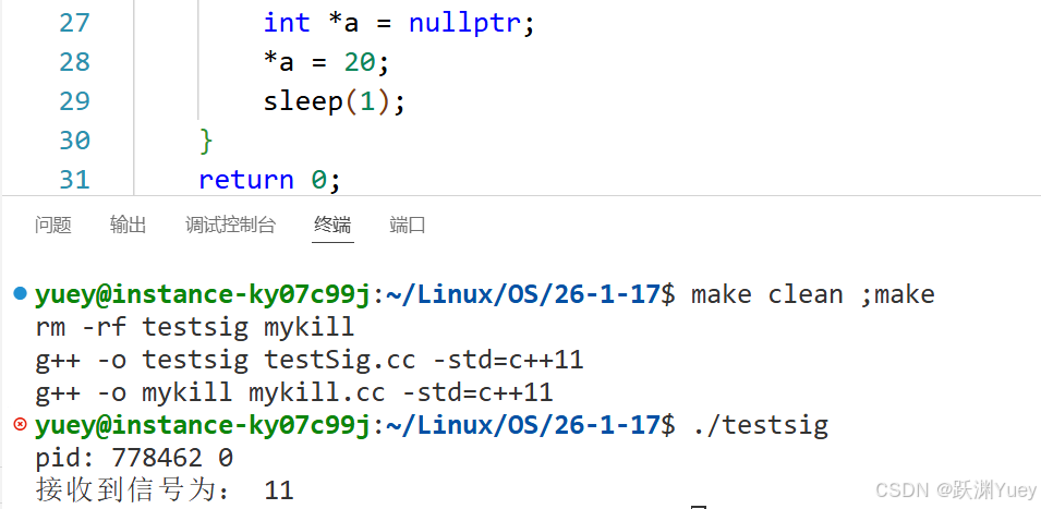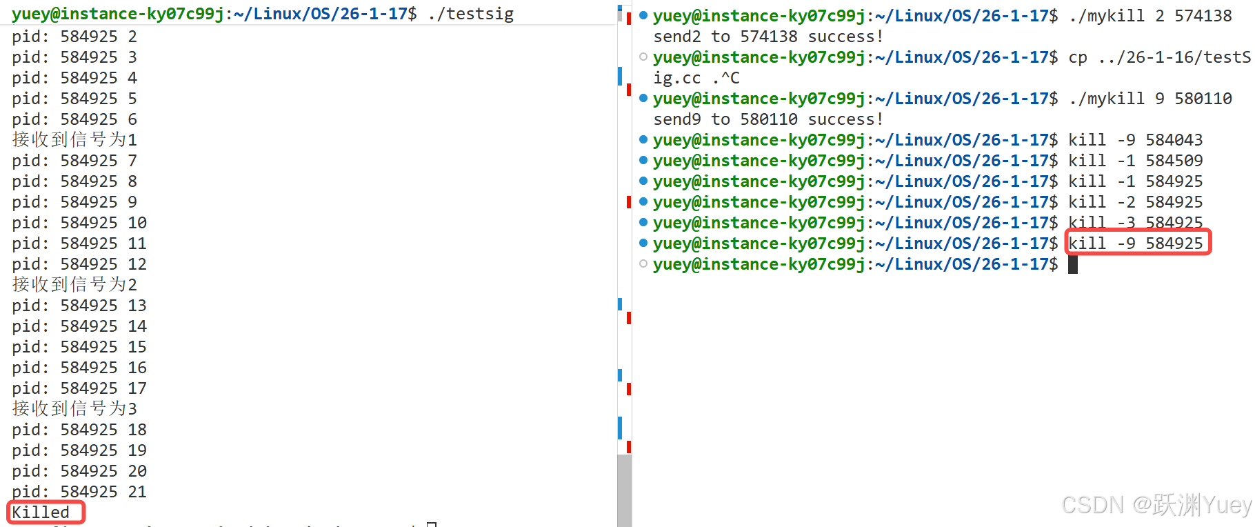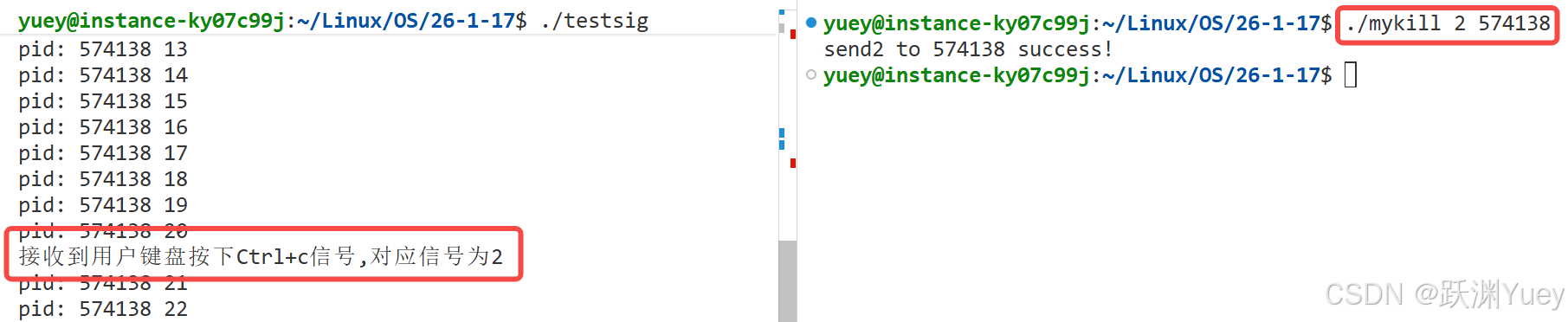 上段代码实现的功能就是模拟实现的kill指令,通过从命令行中读取命令行参数解析后,向目标进程发送对应的信号。