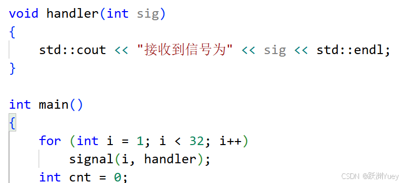 std::cout << "接收到信号为:" << sig << std::endl;