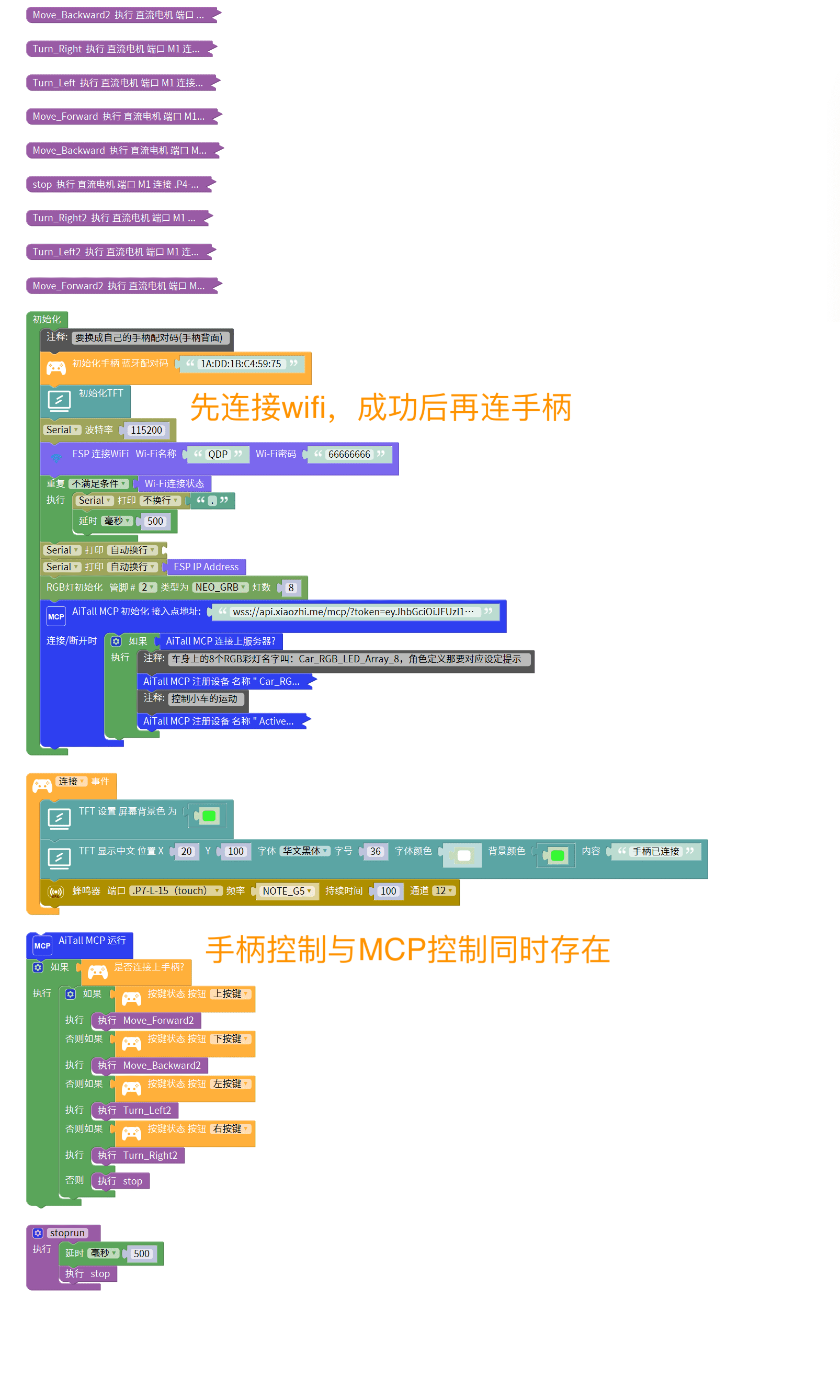 线上线下同步控制,可以用手柄控制小车,同时还可以MCP控制小画的动作及AI对话。