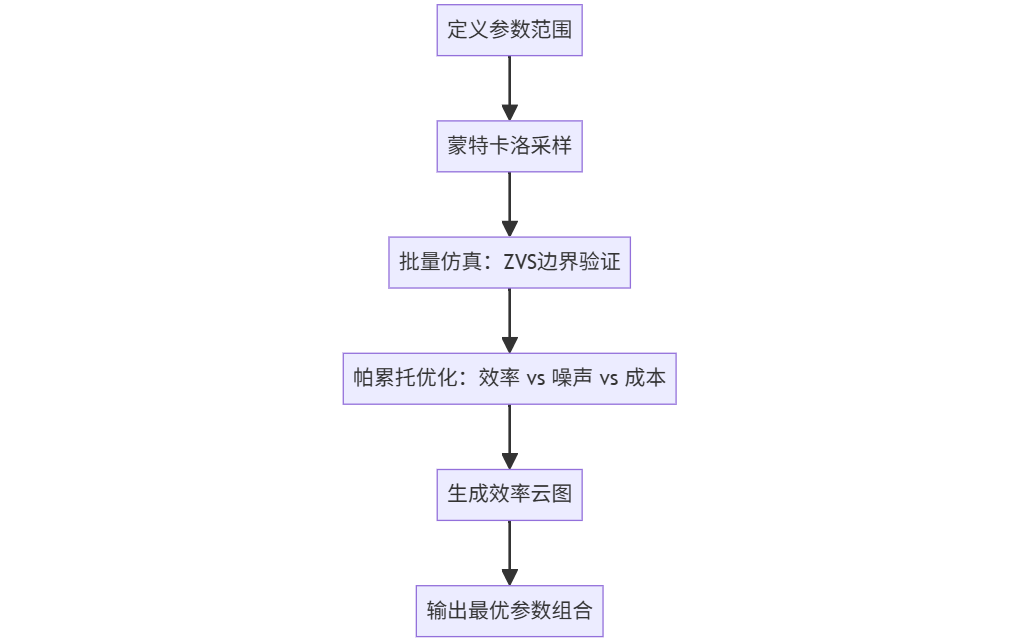 关键突破:传统设计需手动调整30+参数组合,而自动化扫描可在8小时内完成125组仿真(5^3),精准定位ZVS边界。实测表明,此方法使设计验证周期从3周压缩至8小时,效率提升0.3%(满载)。