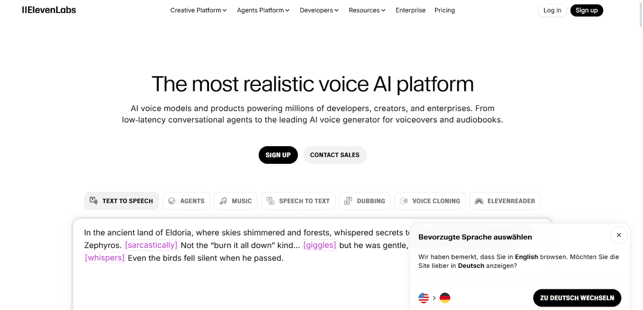 ElevenLabs 特别适合需要多种自然语音来增强多语言叙事的创作者。