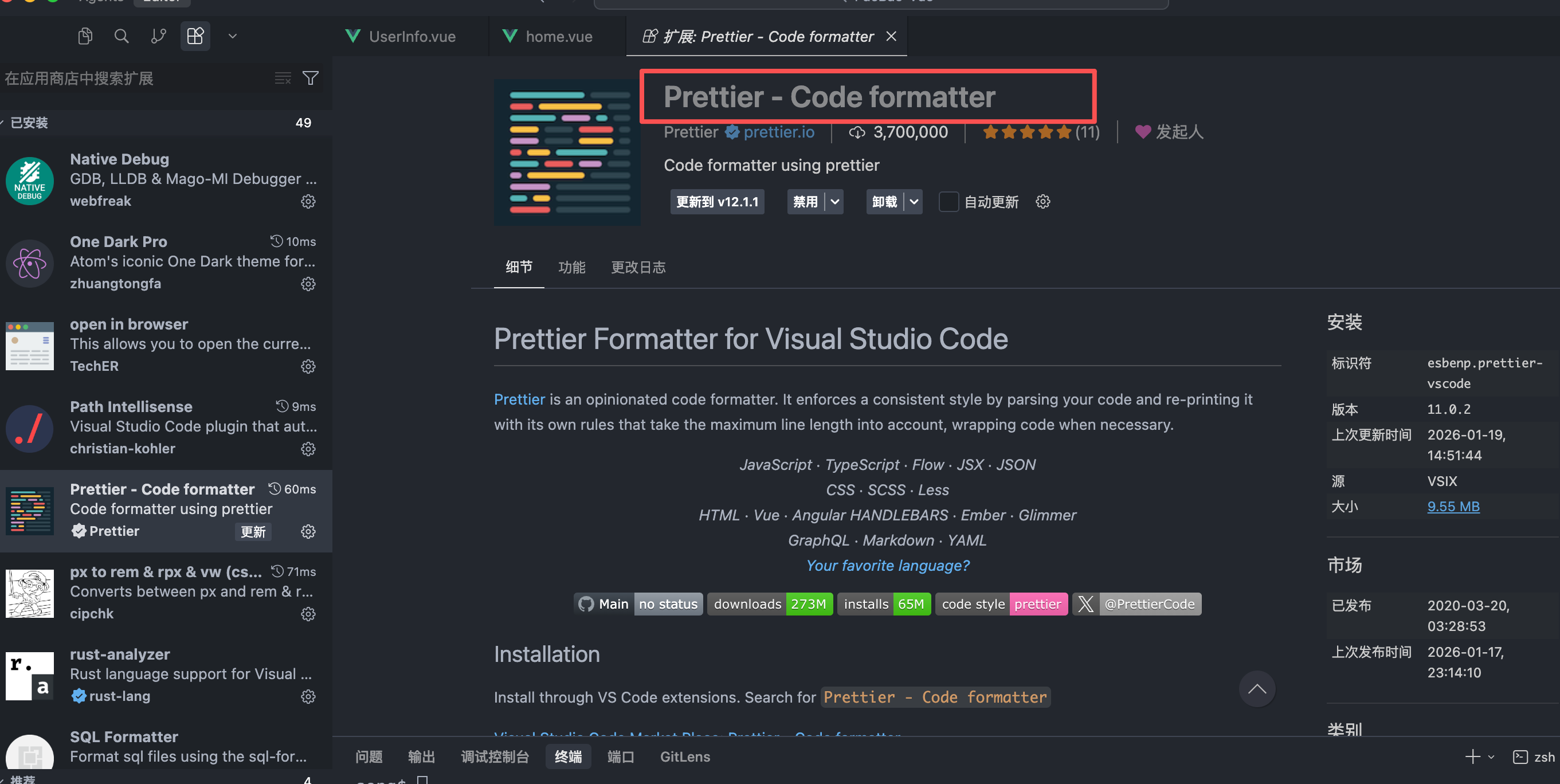 将这个文件拖到cursor中或者vscode中就会自动安装,安装好之后就好了: