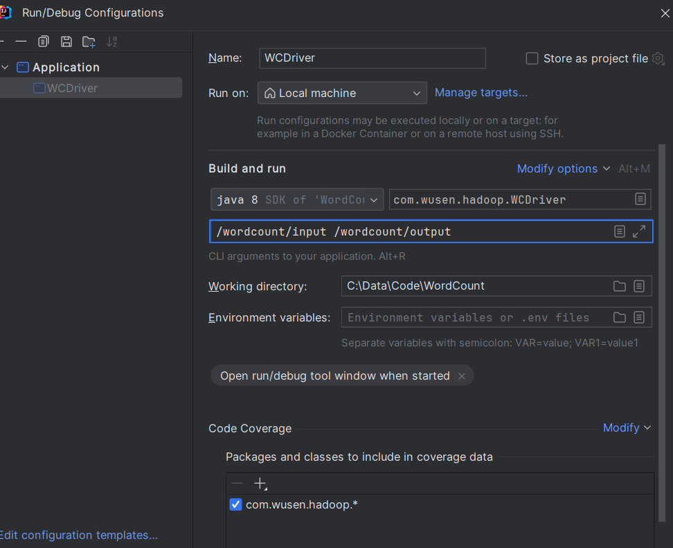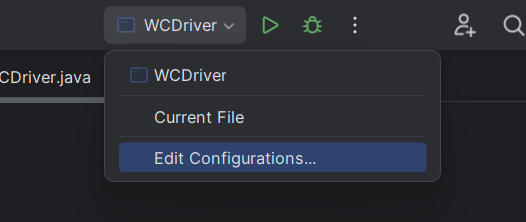IDEA中运行WCDriver:直接在WCDriver类中右键->Run