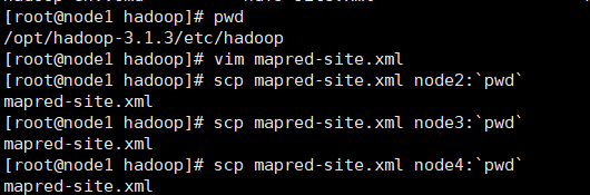 修改配置mapred-site.xml ,加入新内容(四台上都要修改,修改路径:/opt/hadoop-3.1.3/etc/hadoop/mapred-site.xml),修改后重启hadoop集群,重启再执行: