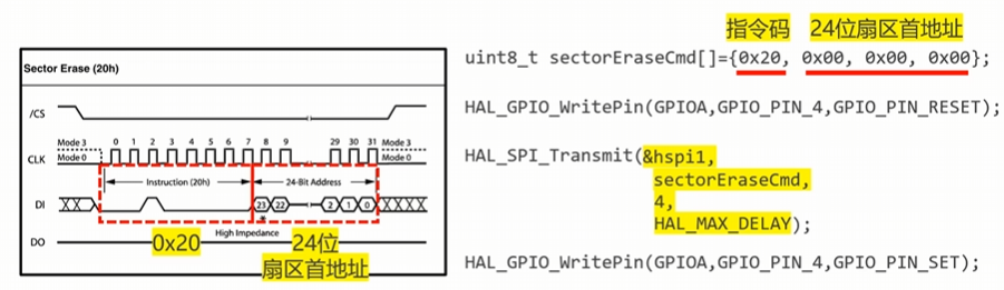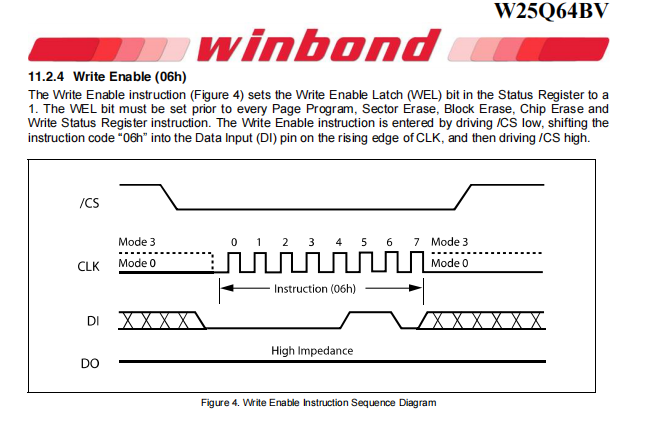 在第20页,我们可以看到写使能的指令码是0x06,我们只需要向从机发送0x06即可