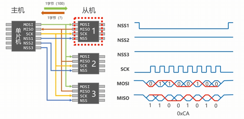(此例中,MOSI和MISO传输的数据均为假设,且相互间没有联系)