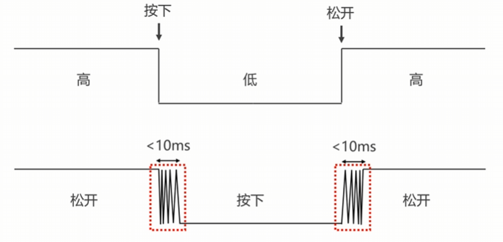 有时候按按钮时,会发现操作失灵,这是按键抖动引起的: