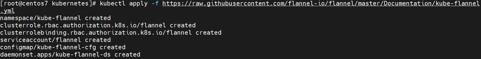 kubectl apply -f https://raw.githubusercontent.com/flannel-io/flannel/master/Documentation/kube-flannel.yml