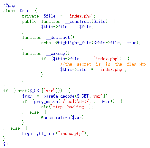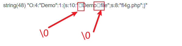 O:4:"Demo":2:{s:10:"\0Demo\0file";s:8:"fl4g.php";}便能够绕过魔术方法__wakeup的调用。序列化数据显示:
